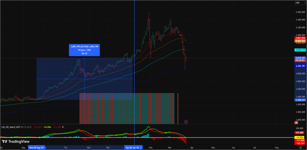 За последние 15 лет стоимость золота выросла в три раза. В марте 2026 года цена одной тройской унции (31,1 грамм) колеблется в диапазоне $5020-5120, а в отдельные моменты января-февраля превышала $5500-5600. Динамика почти зеркально повторяет расширение глобальной денежной массы М2 в ключевых экономиках: США, еврозоне, Китае и Японии.
