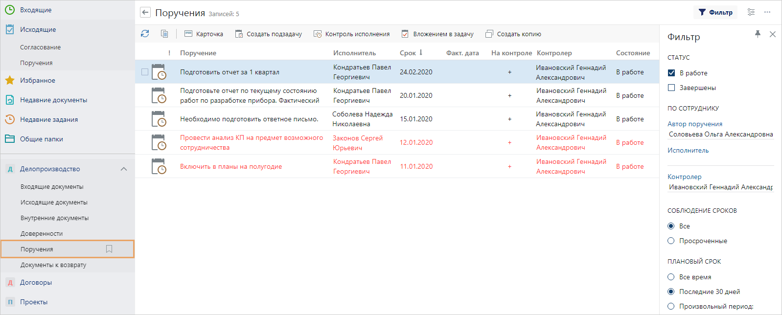 - Организация задач. Постановка и отслеживание задач в рамках единой платформы помогает избежать рассогласования между подразделениями.
