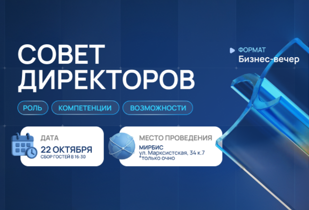 Школа бизнеса МИРБИС приглашает на эксклюзивное мероприятие «Совет Директоров: Роль, компетенции, возможности», которое состоится 22 октября.