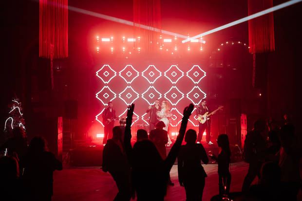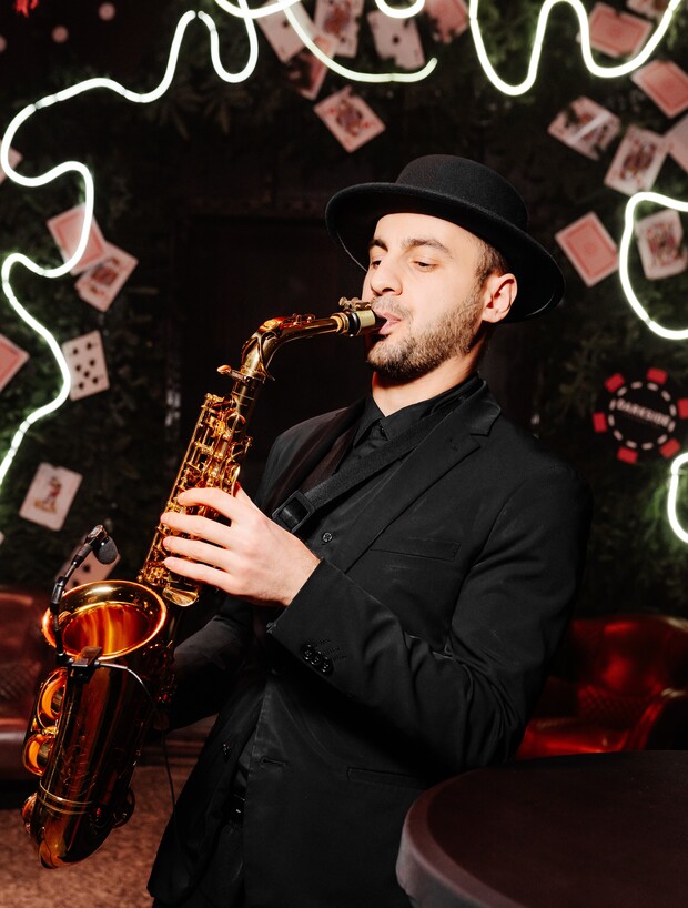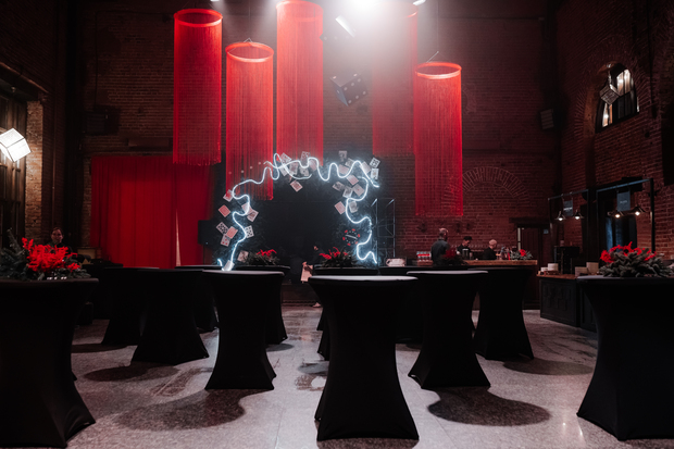 В день события гостей ожидал интерьер, оформленный в стиле классического казино. Пространство превратилось в элегантный игровой холл: красные драпировки, фирменная атрибутика, столы с крупье, световые акценты и элементы, отсылающие к эстетике Лас-Вегаса. На корпоративе была как антуражная, так и современная живая музыка. Первая была представлена саксофонистом, а вторая кавер-группами.