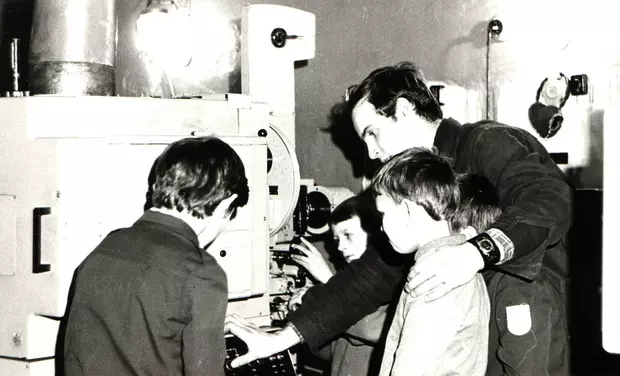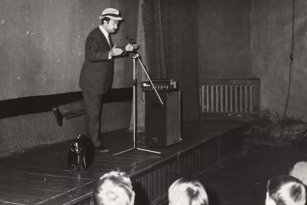 Фото из универмага и фото кружка кинопроизводства в школе. И артист Г.Вицин выступает в клубе.