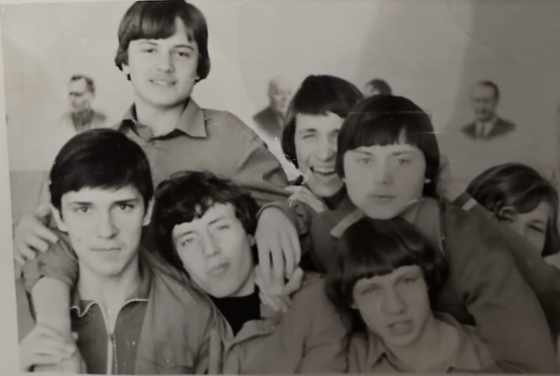 Вот и я со своими друзьями. Я в центра во втором ряду.