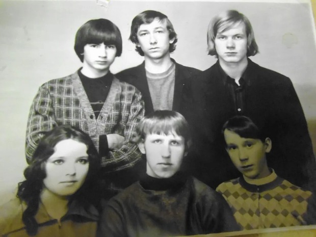 Да, прически из 70-х, но одеты более в современную одежду - годов из 90-х... Особенно парень слева.
