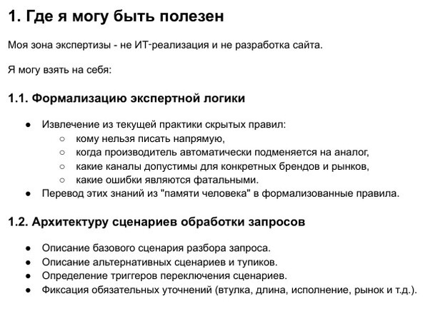 Михаил инициативно сделал анализ, о котором его никто не просил. Подразумевалось, что он посмотрит в чем он может быть полезен и после этого мы начнем работу.